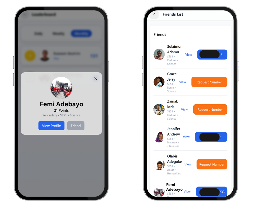 Find, Request New Friends, even students who are not in your school.
